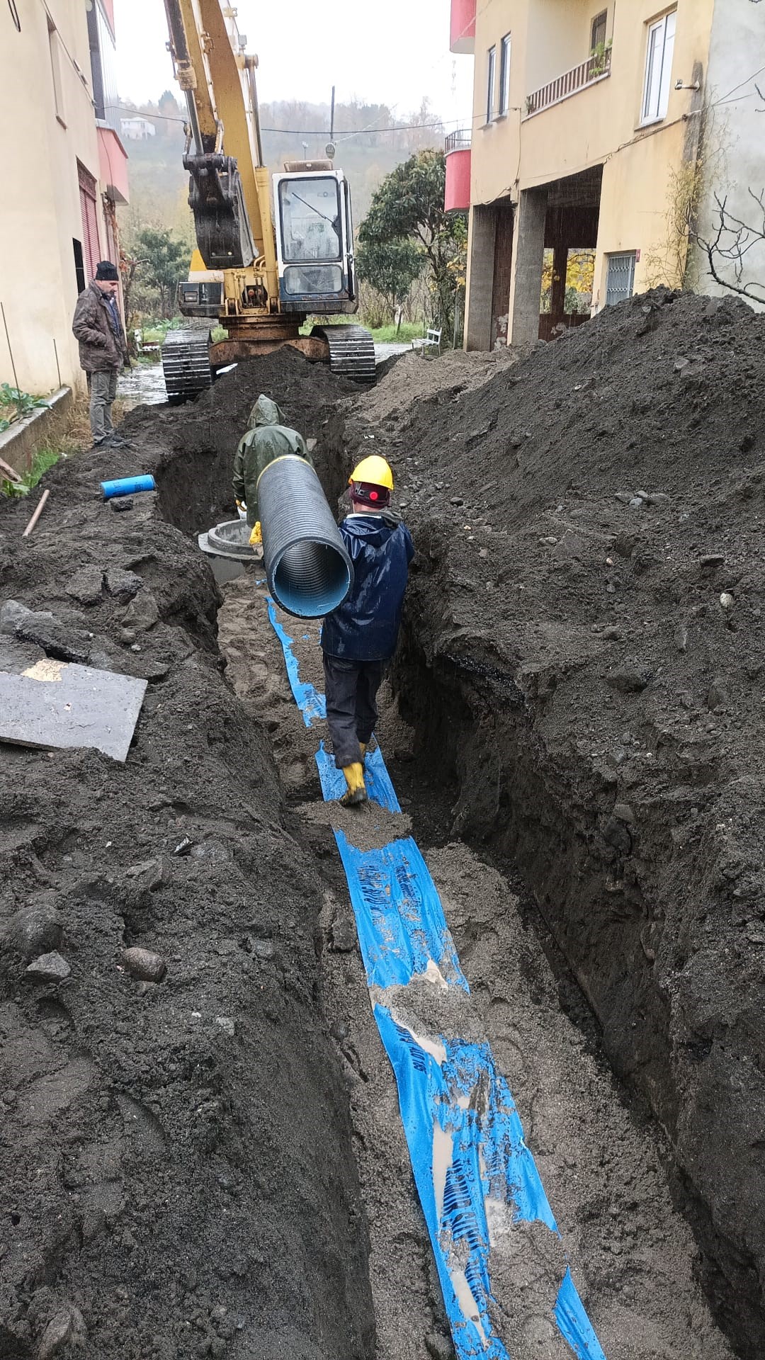 Trabzon Büyükşehir Belediyesi TİSKİ Genel Müdürlüğü kent merkezinin yanı sıra ilçelerde de altyapı hamlesini sürdürüyor. Vakfıkebir İlçesi Hacıköy Mahallesi’nde, yağışlı dönemlerde yaşanan su birikintileri ve taşkın risklerini ortadan kaldırmak amacıyla hayata geçirilen “Yağmur Suyu Şebeke Hattı İnşaatı Yapım İşi” kapsamında altyapı çalışmaları başladı.