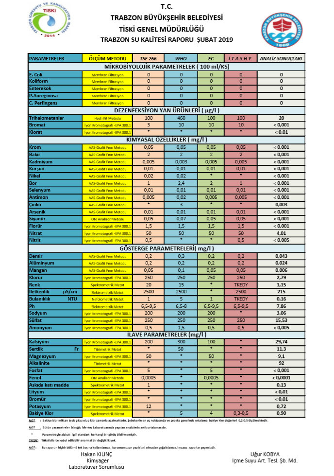 Şubat Ayı Su Kalite Raporu
